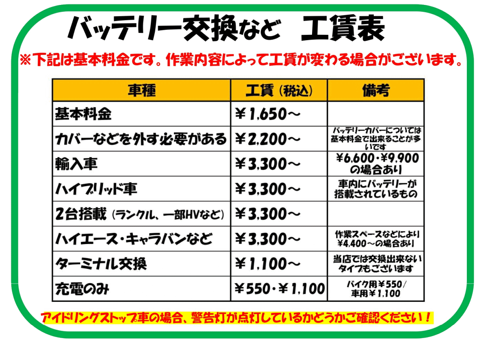 ☆ 自動車以外(トラクターやフォークリフト等の農業機械・産業機械等)のバッテリー交換もお気軽にお問合せ下さい。