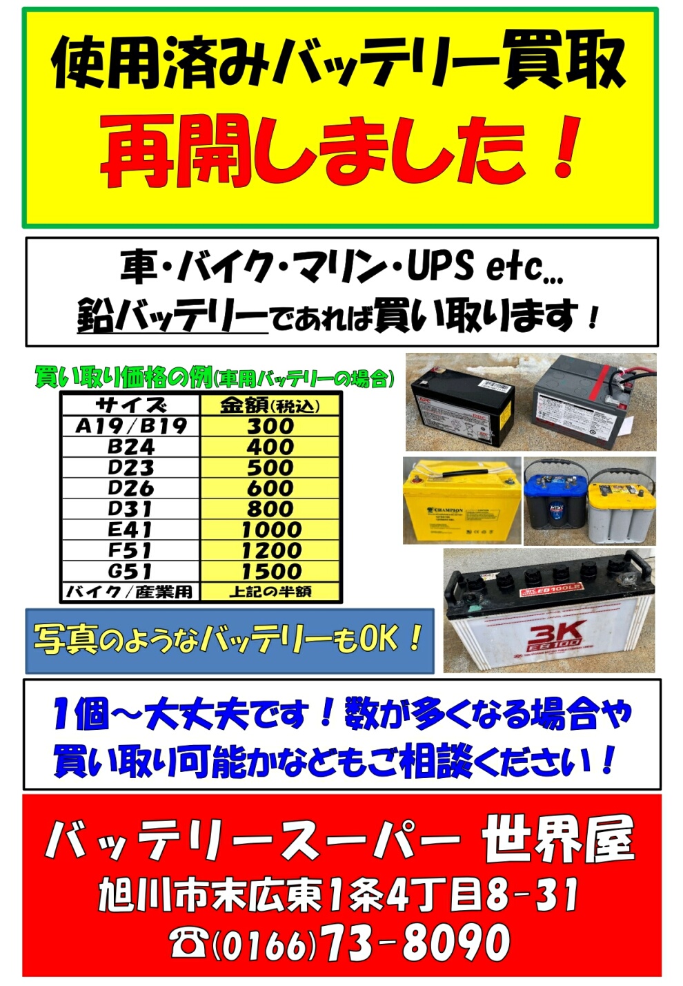 北海道唯一の激安バッテリー専門店『世界屋』バッテリーのことなら何でもご相談ください!